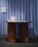 In addition, the design features a textured backdrop representing the vast seas and oceans that connect and separate our lands. The rammed earth plinths (a mix of London clay, waste red brick and sand) as well as the hemp surfaces create a synergy between the residents’ research and its scenography. These design elements respond to the intersectional challenges posed by the climate crisis including exploitation, migration and depleting material resources. Photos by Felix Speller.