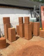 Modular 300x300 Rammed Earth plinths made in Tolworth using waste London clay & crushed waste brick from HG Matthews. Photo by 121 Collective